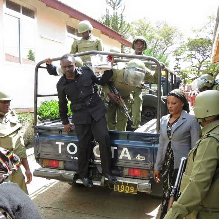 Msigwa akishushwa kwenye gari la polisi.